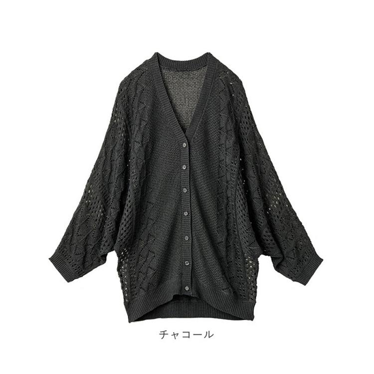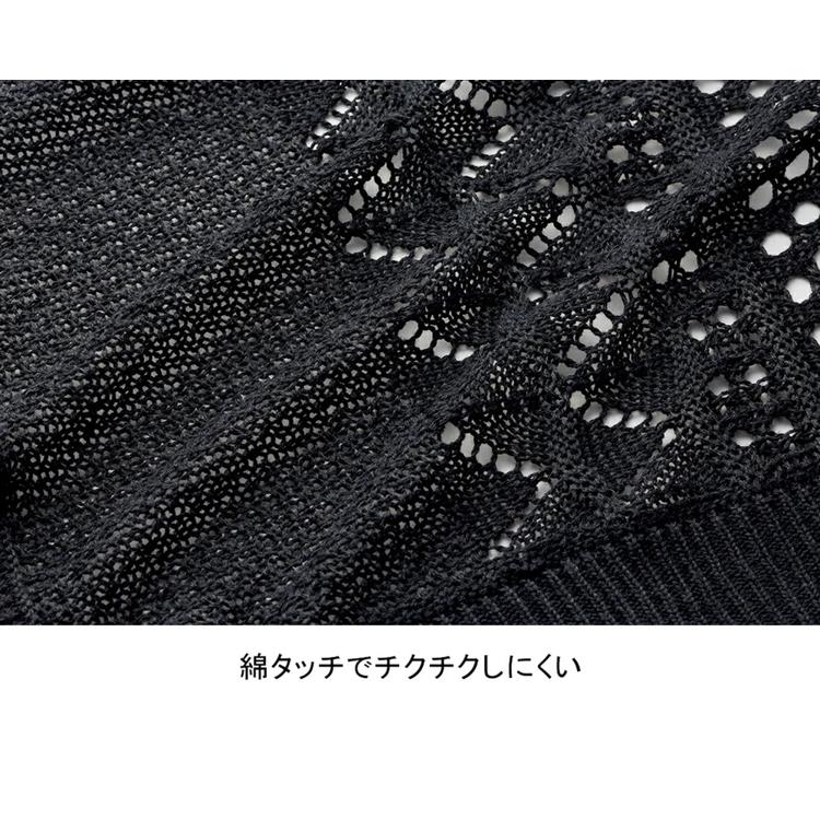 ・透かし柄と無地見え編みの切り替えで程よい透け感。