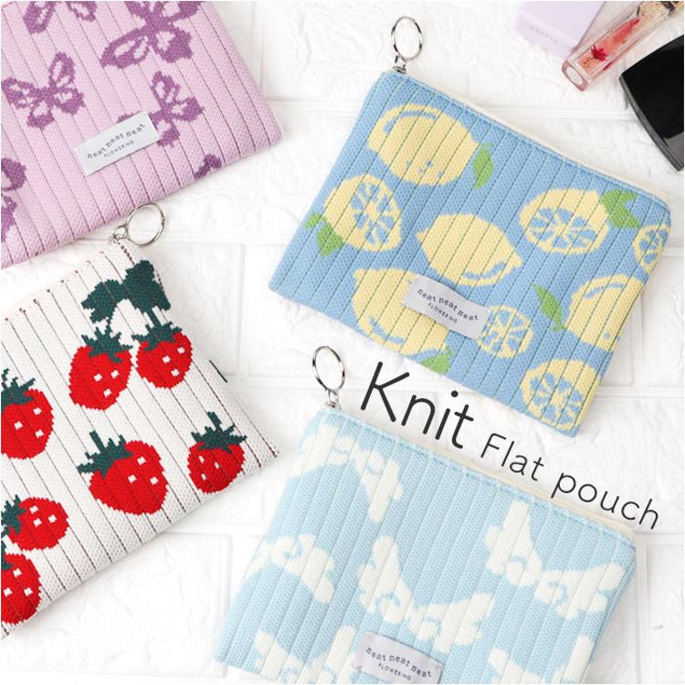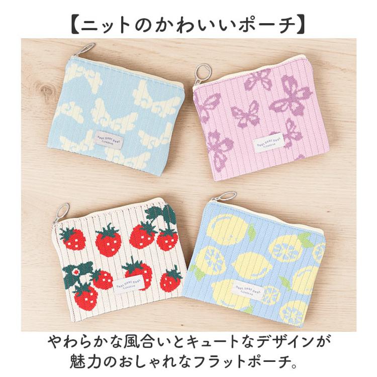 ・やわらかな風合いとキュートなデザインが魅力のおしゃれなフラットポーチ。