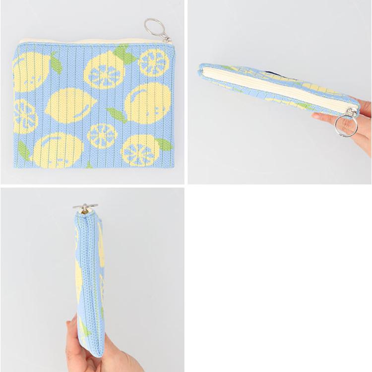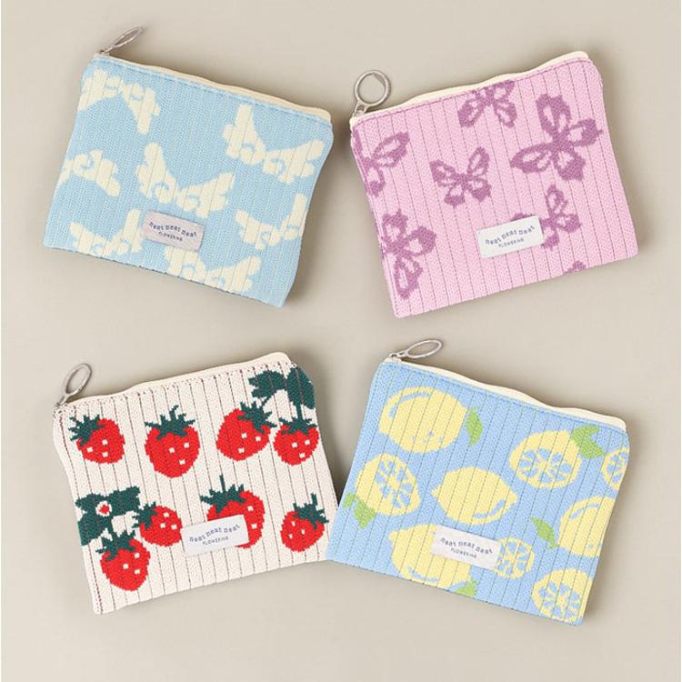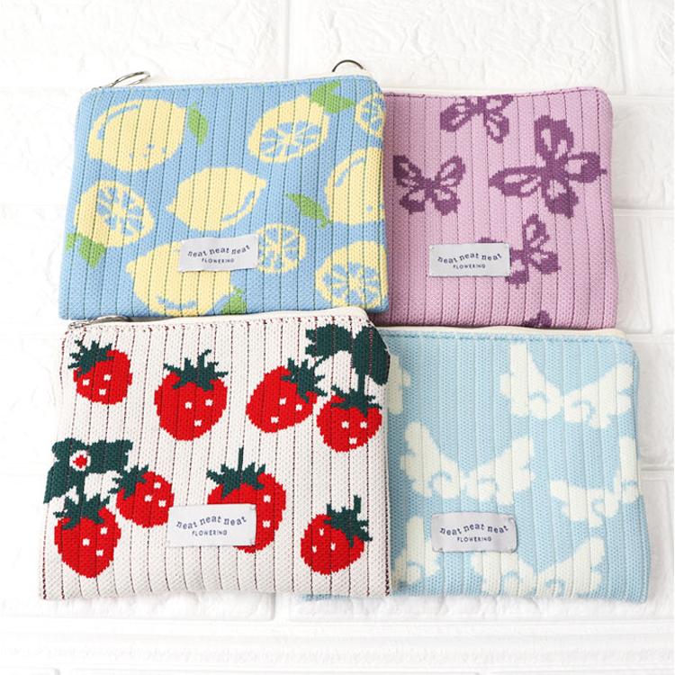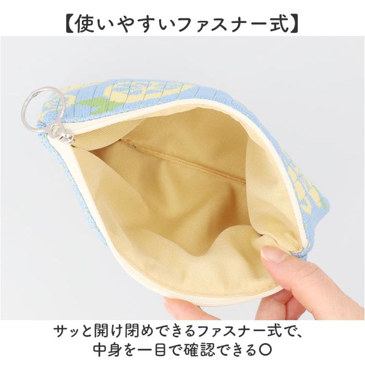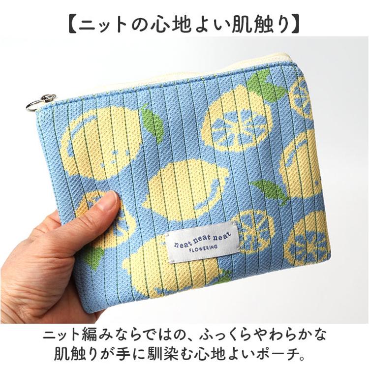 ・ニット編みならではの、ふっくらやわらかな肌触りが手に馴染む心地よいポーチ。