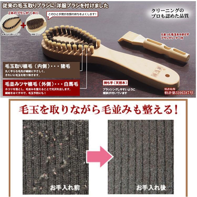 ・白馬毛と猪毛を配置することで、1度のブラッシングで洋服のメンテナンスが簡単に♪
