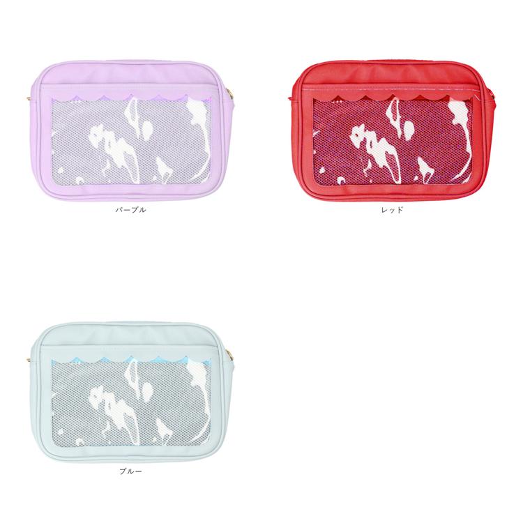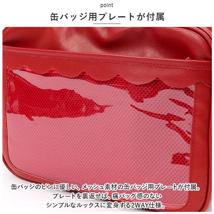 ・前面ファスナーポケットのクリアウィンドウが、この痛バッグのヒミツ。「推し」の缶バッジや写真を入れて、「推し色」にカスタマイズ可能。