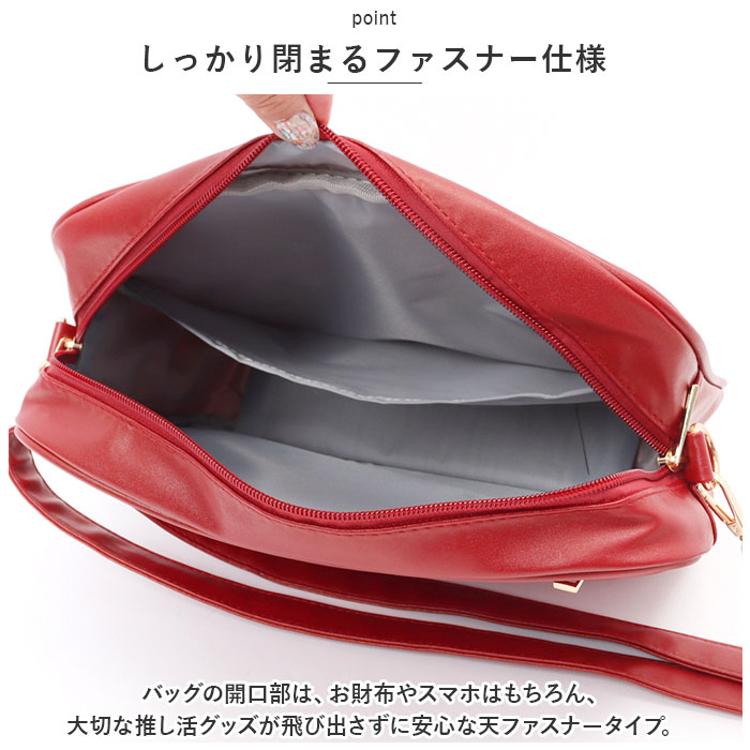 ・バッグの開口部は、お財布やスマホはもちろん、大切な推し活グッズが飛び出さずに安心な天ファスナータイプ。