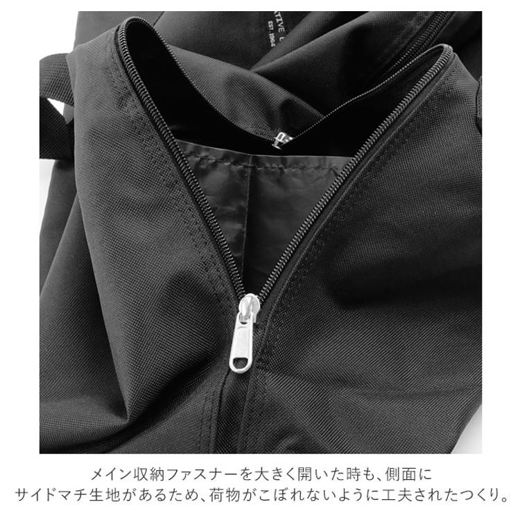 ・メイン収納開口部は、ダブルファスナー式で側面まで大きく開くので、物の出し入れがラクラク出来る!旅行用の衣類など荷物がたくさん入る大容量なのが嬉しい。