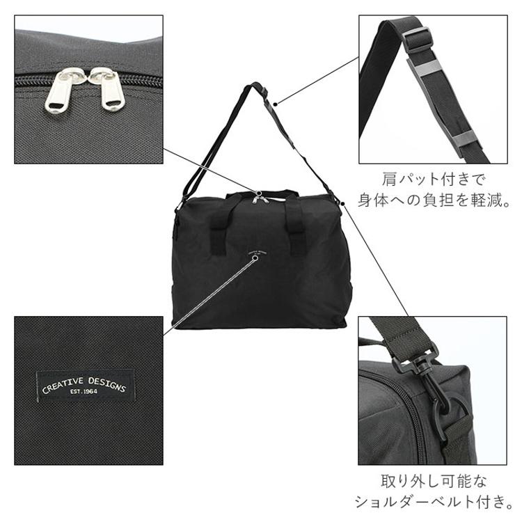 ・荷物が多くなった時や、両手をフリーにしたいときに肩掛けにできるショルダーベルト付き。肩パット付きなので、荷物が重くなってしまったときの身体への負担をしっかり軽減。