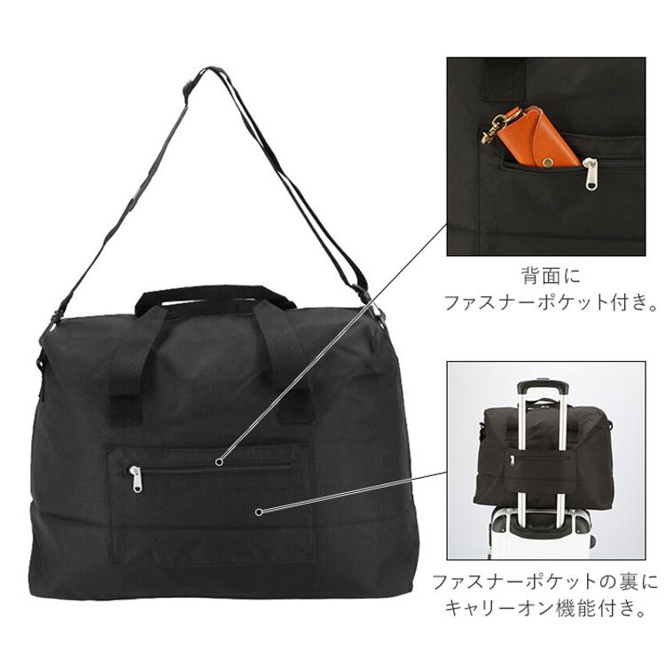 ・背面のファスナーポケットは、ポケット生地の裏にキャリーケースのバーを通すことのできるキャリーオン機能付き。スーツケースの他にもう一つバッグが欲しいときなど、旅行用のサブバッグに最適。