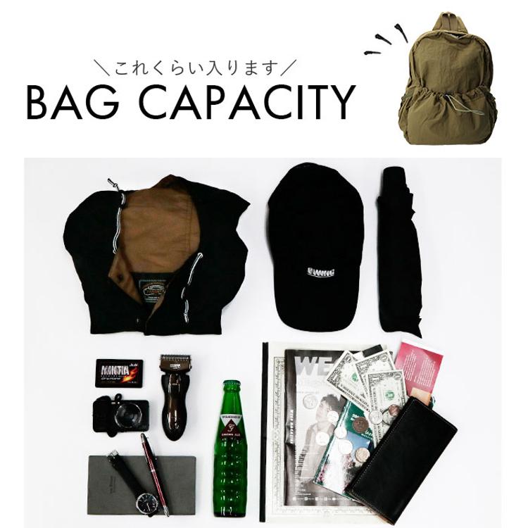 ・フロント両サイドのゴム口ポケットでペットボトルなどをサッと収納♪