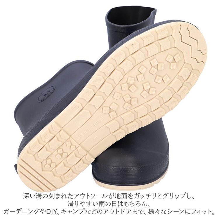 ・深い溝の刻まれたアウトソールが地面をガッチリとグリップし、滑りやすい雨の日はもちろん、ガーデニングやDIY、キャンプなどのアウトドアまで、様々なシーンにフィット。