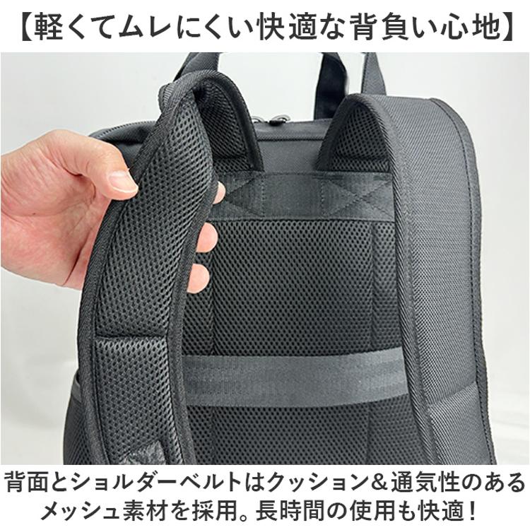 ・背面とショルダーベルトはクッション&通気性のあるメッシュ素材を採用。長時間の使用も快適!
