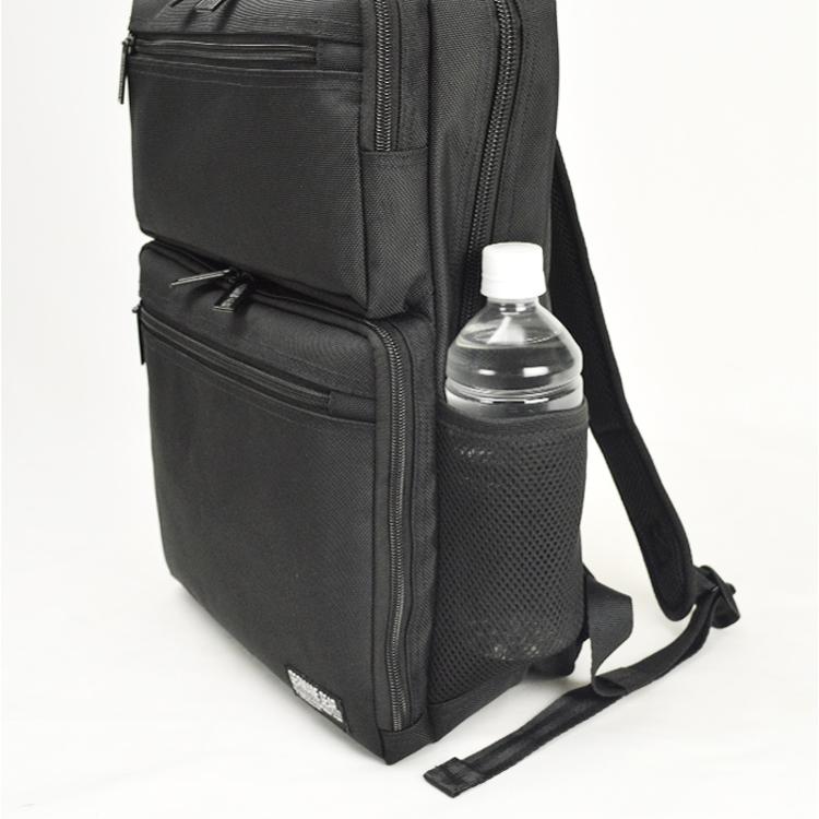 ・内側と外側にポケットを配置。内側は14インチ程度のPCが入るクッション付きのポケットを装備!