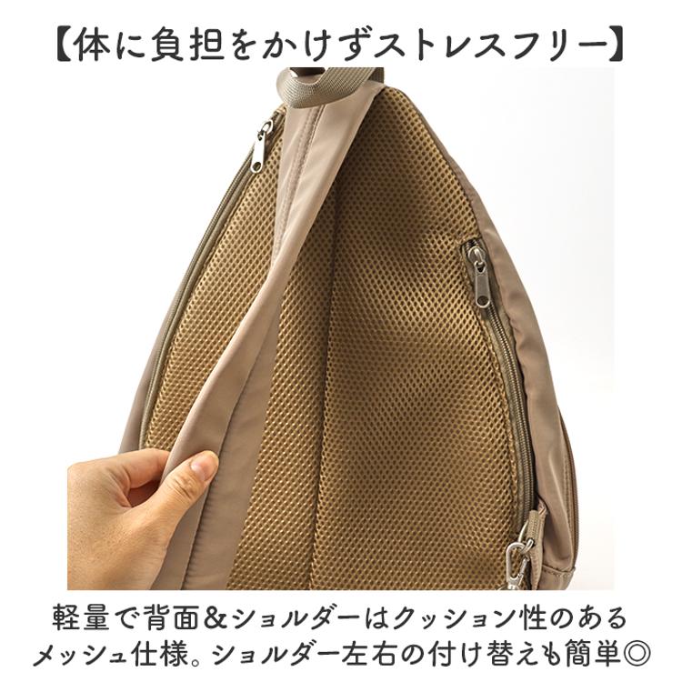 ・軽量で背面&ショルダーはクッション性のあるメッシュ仕様。ショルダー左右の付け替えも簡単◎