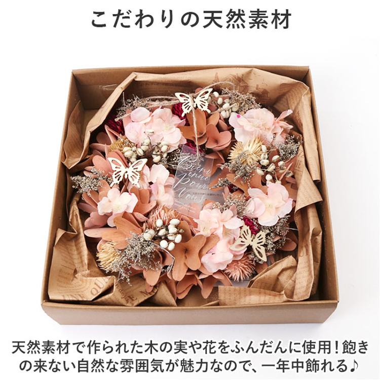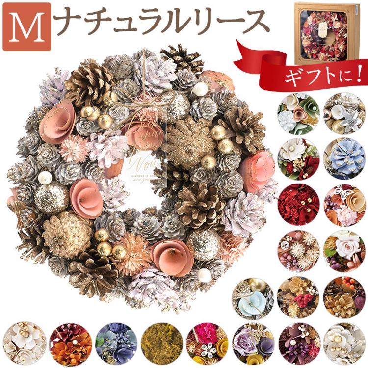 リース 玄関 Mサイズ 楽天 母の日 フラワーアレンジメント 造花 ナチュラルリース M ブリザーブドフラワー フラワーギフト 箱入り ギフト 春 オールシーズン クリスマス マザーズデイ