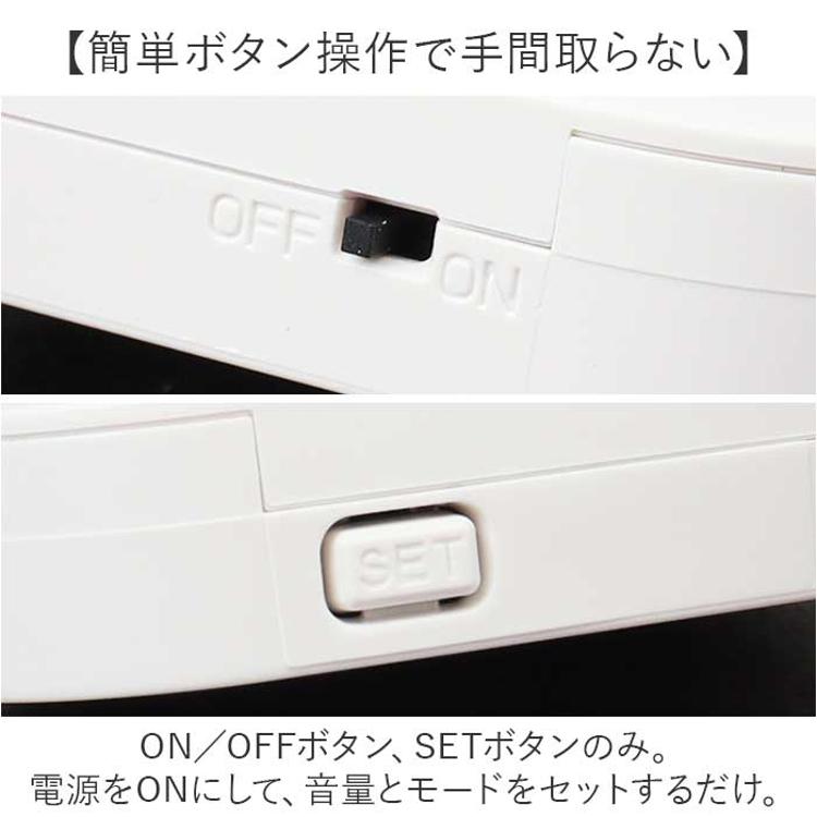 ・ON/OFFボタン、SETボタンのみ。電源をONにして、音量とモードをセットするだけ。