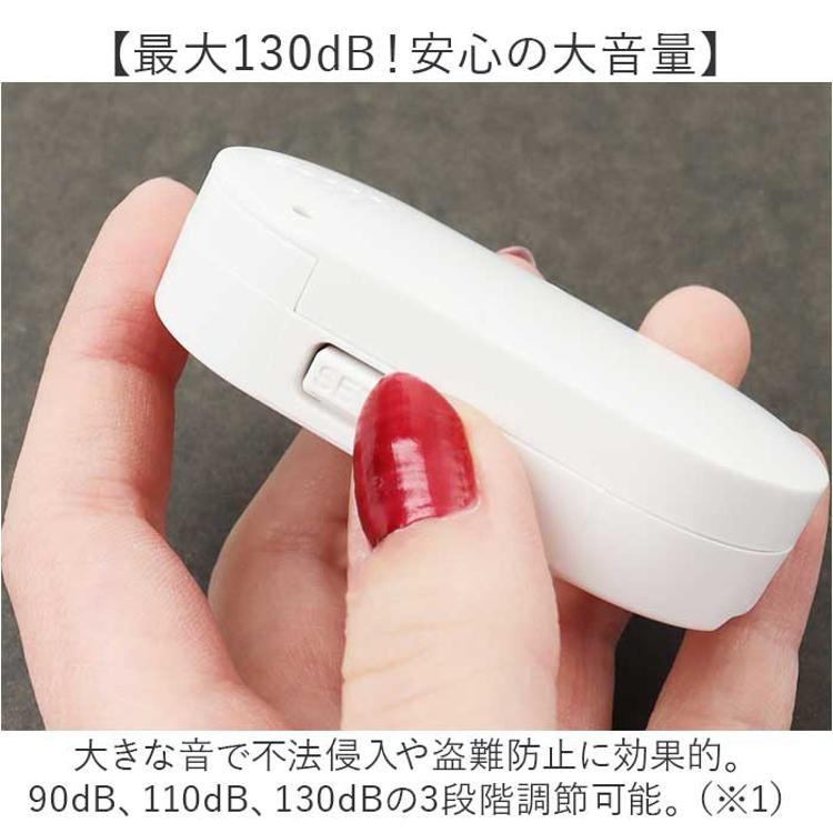 ・大きな音で不法侵入や盗難防止に効果的。90dB、110dB、130dBの3段階調節可能。