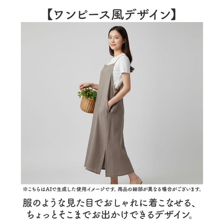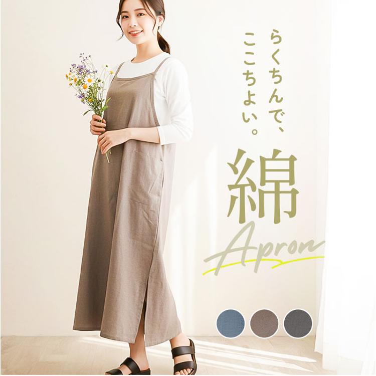 ・すっぽり被るだけ、ボタンレスで楽ちん。ワンピースのような、両脇スリットエプロン。