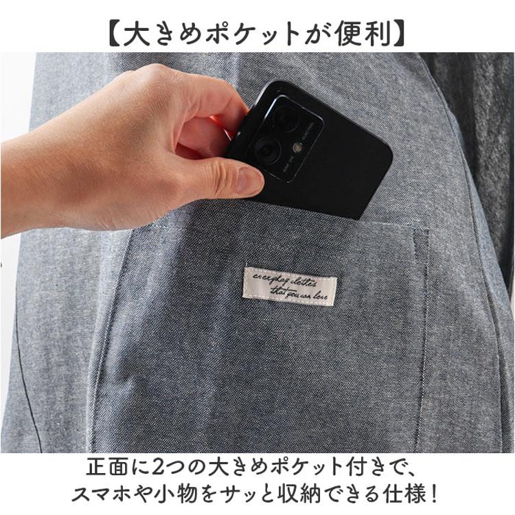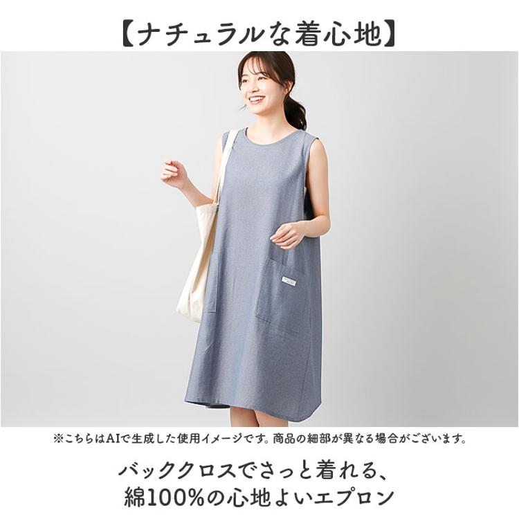 エプロン バッククロス おしゃれ 通販 前掛け シャンブレー 生地 袖なし レディース 大人 保育士 綿100% コットン インド綿 ポケット かわいい クロス ナチュラル 女性 おしり 隠れる