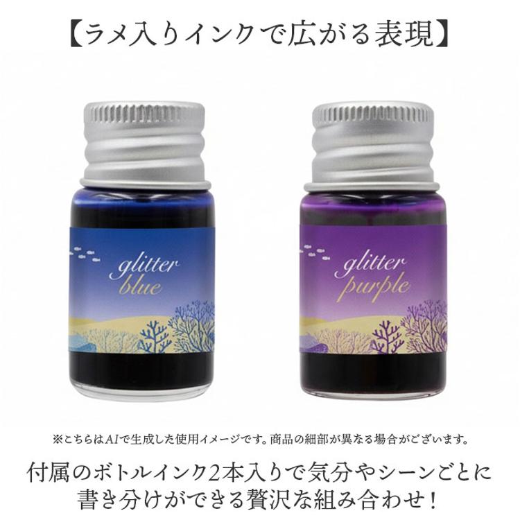 【ラメ入りインクで広がる表現】付属のボトルインク2本入りで気分やシーンごとに書き分けができる贅沢な組み合わせ!