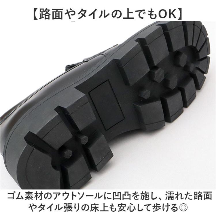 ・ゴム素材のアウトソールに凹凸を施し、濡れた路面やタイル張りの床上も安心して歩ける◎