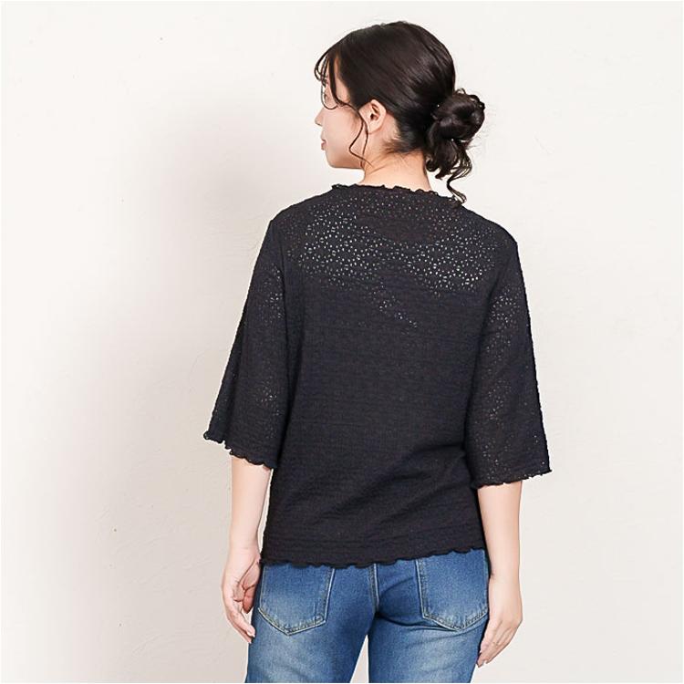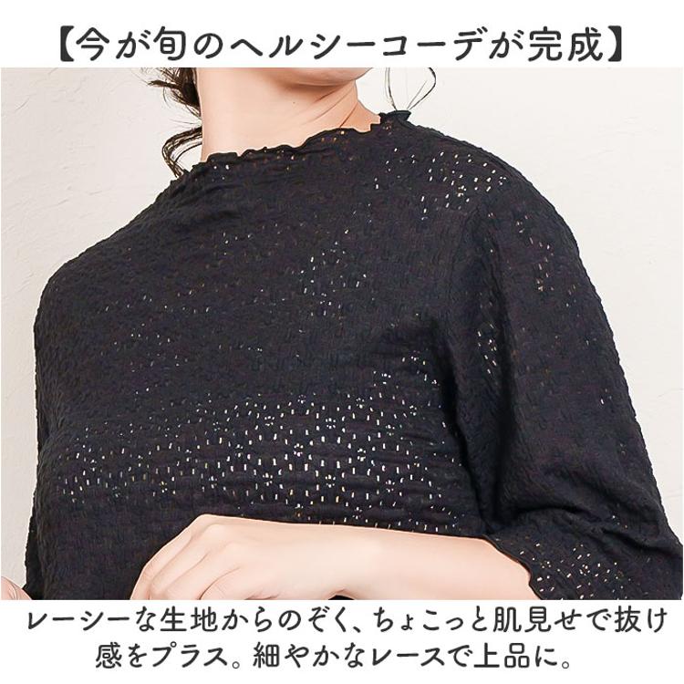 tシャツ レディース 半袖 通販 5分袖Tシャツ レディースTシャツ リブTシャツ プルオーバー ストレッチレース 動きやすい 伸縮性レース素材 オシャレ かわいい シンプル トップス カジュアル 着やすい PAGE ONE ページワン 贈り物