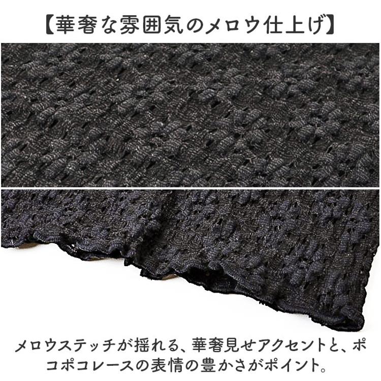 ・メロウステッチが揺れる、華奢見せアクセントと、ポコポコレースの表情の豊かさがポイント。