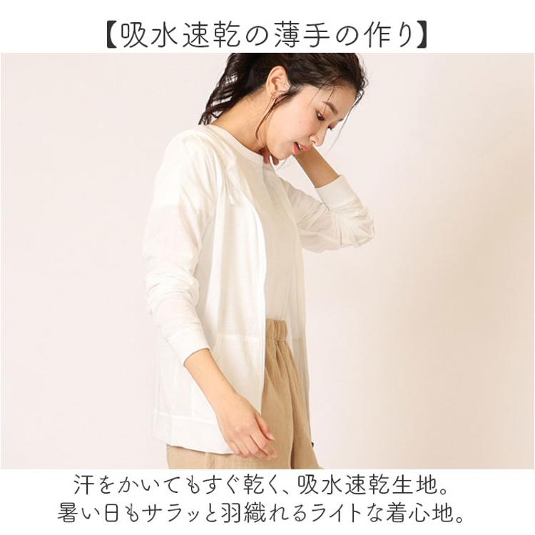 ・汗をかいてもすぐ乾く、吸水速乾生地。暑い日もサラッと羽織れるライトな着心地。