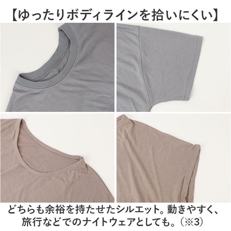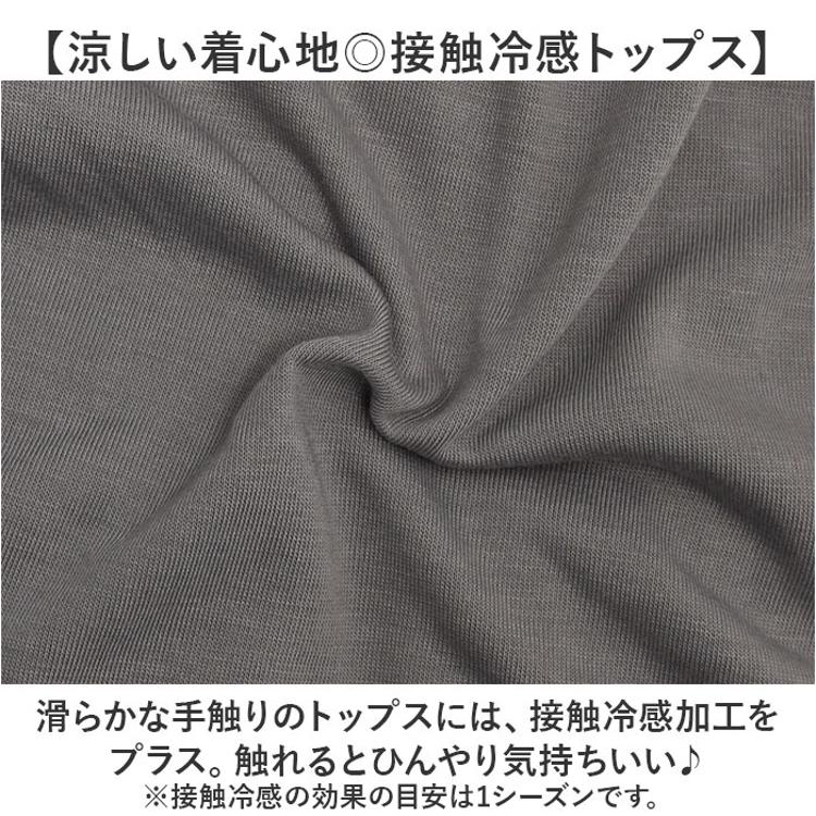 ・滑らかな手触りのトップスには、接触冷感加工をプラス。触れるとひんやり気持ちいい♪