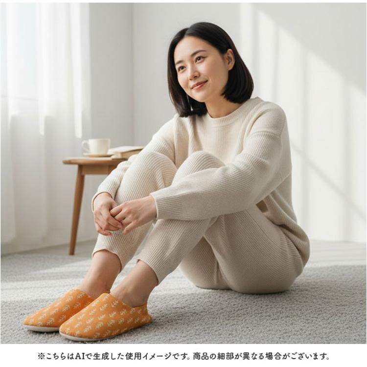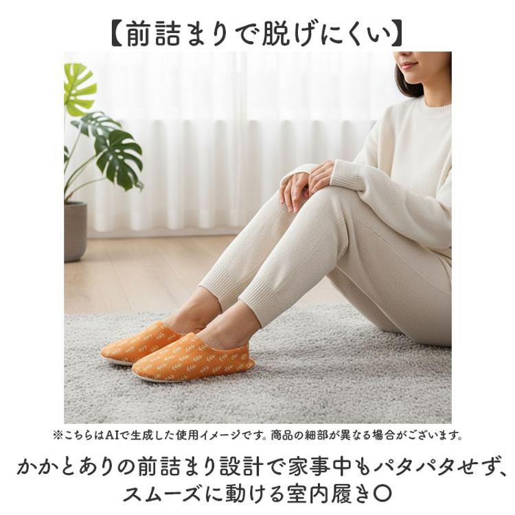 ・かかとありの前詰まり設計で家事中もパタパタせず、スムーズに動ける室内履き〇