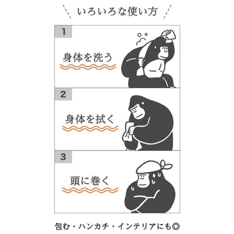 ・軽やかな使い心地で、用途もいろいろ◎「ごリラックス 手ぬぐい」。