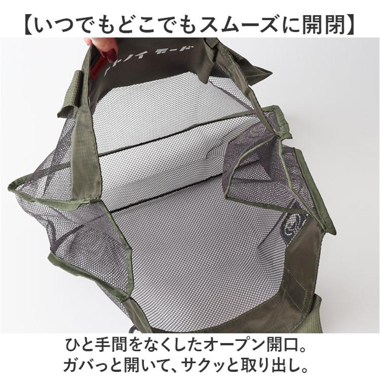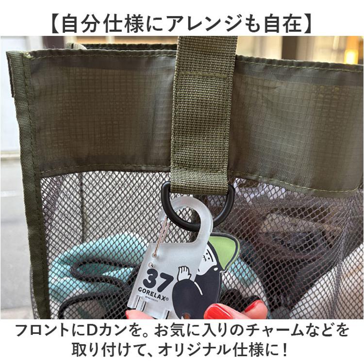 ・通気性抜群のメッシュ生地。少し濡れた小物もINできて、ムレの心配も不要。
