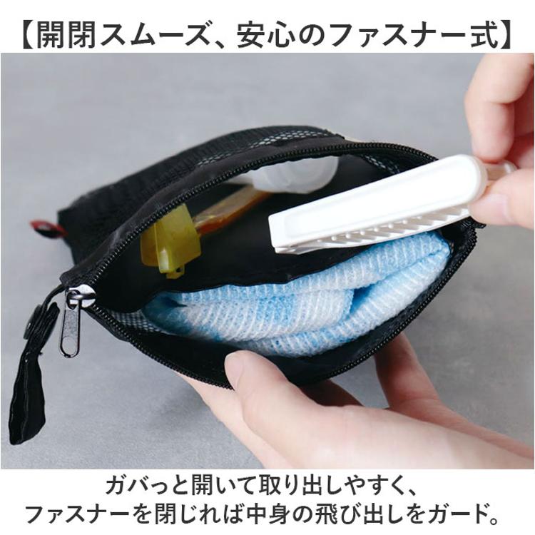 ・通気性もばっちり。歯ブラシなど少し濡れた小物もINできて、ムレの心配も不要。