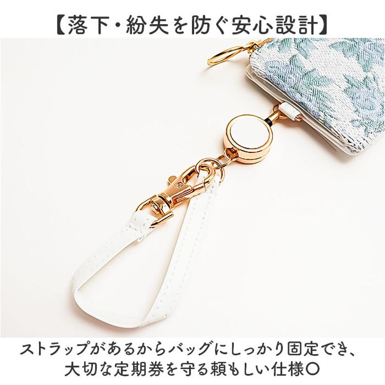 ・ストラップがあるからバッグにしっかり固定でき、大切な定期券を守る頼もしい仕様〇