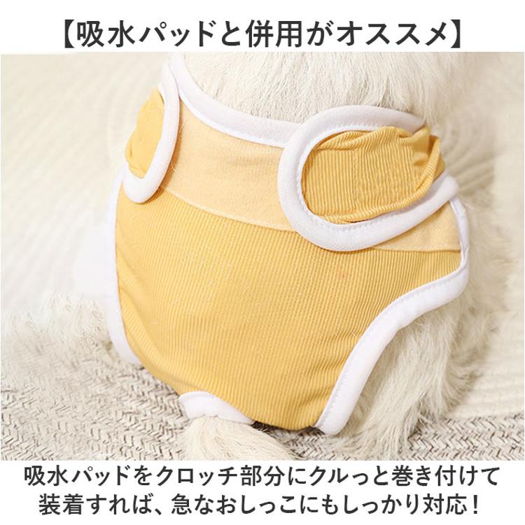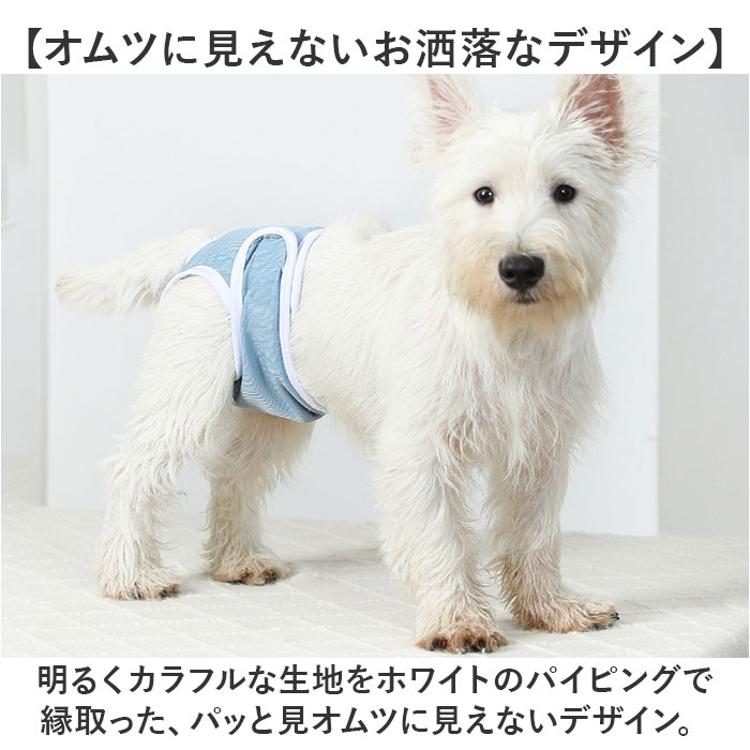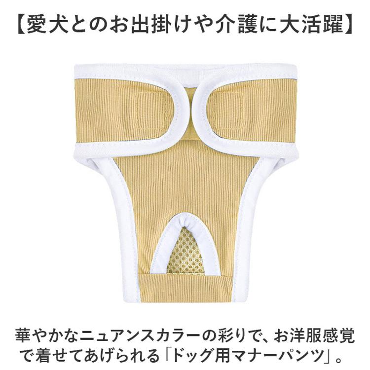 ・華やかなニュアンスカラーの彩りで、お洋服感覚で着せてあげられる「ドッグ用マナーパンツ」。