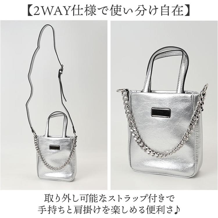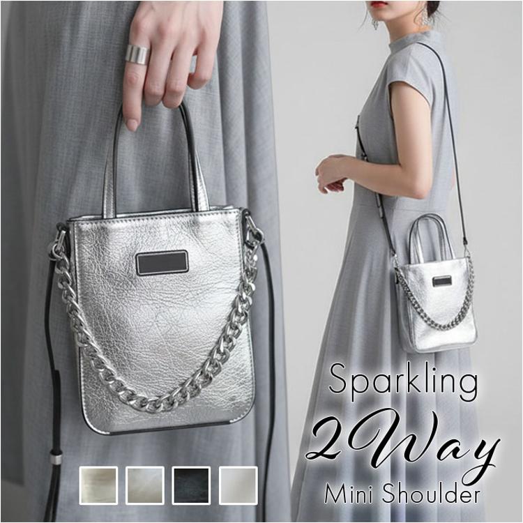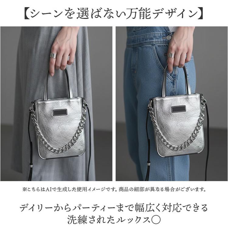 ・太めシルバーチェーンが目を引く、様々なシーンで活躍するミニショルダー