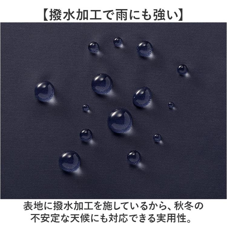 ・表地に撥水加工を施しているから、秋冬の不安定な天候にも対応できる実用性。