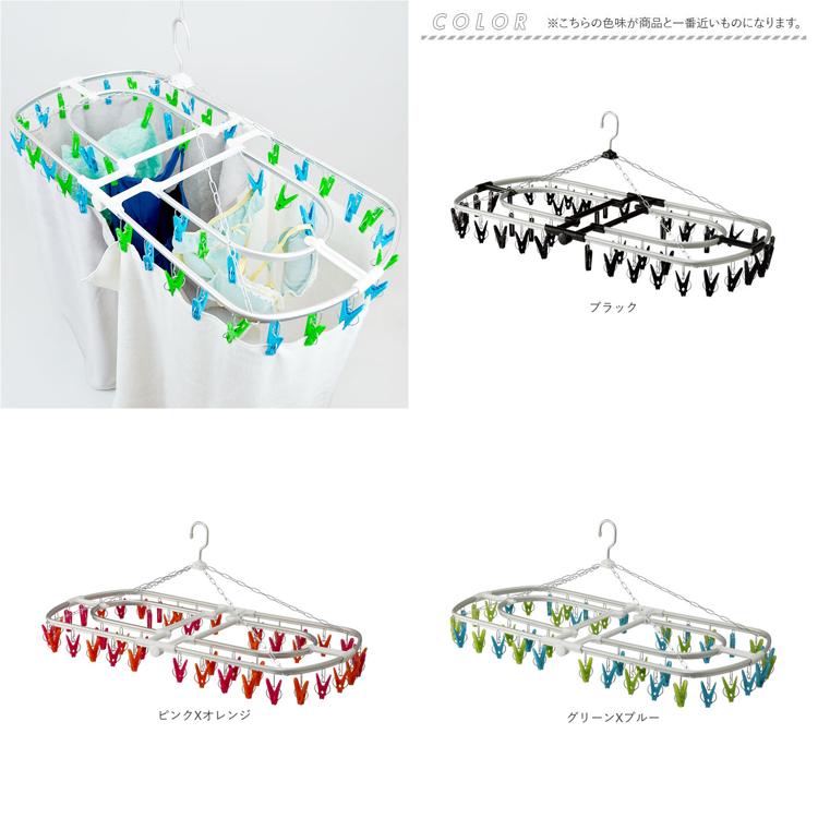 KOGURE ピンチハンガー 通販 アルミ 角ハンガー 44ピンチ 洗濯ピンチハンガー 洗濯ハンガーピンチ アルミ角ハンガー 洗濯ハンガー 隠し干し 丈夫 ブラック 折りたたみ 洗濯物干し