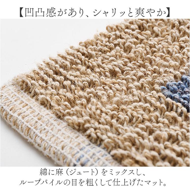 ・綿に麻(ジュート)をミックスし、ループパイルの目を粗くして仕上げたマット。