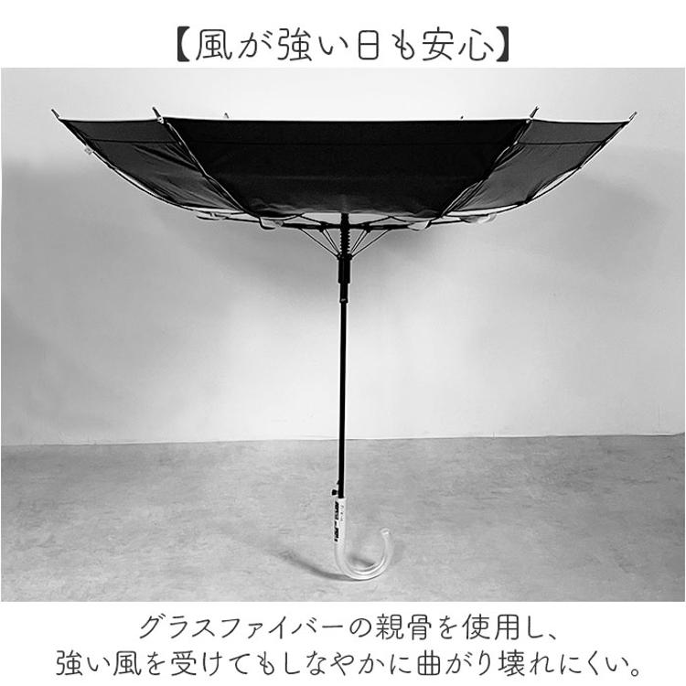 ・グラスファイバーの親骨を使用し、強い風を受けてもしなやかに曲がり壊れにくい。