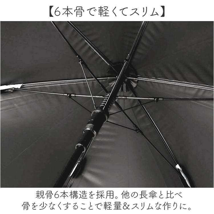 ・親骨6本構造を採用。他の長傘と比べ骨を少なくすることで軽量&スリムな作りに。