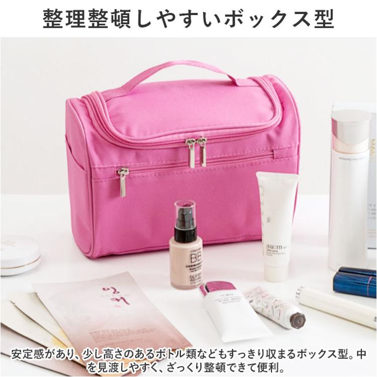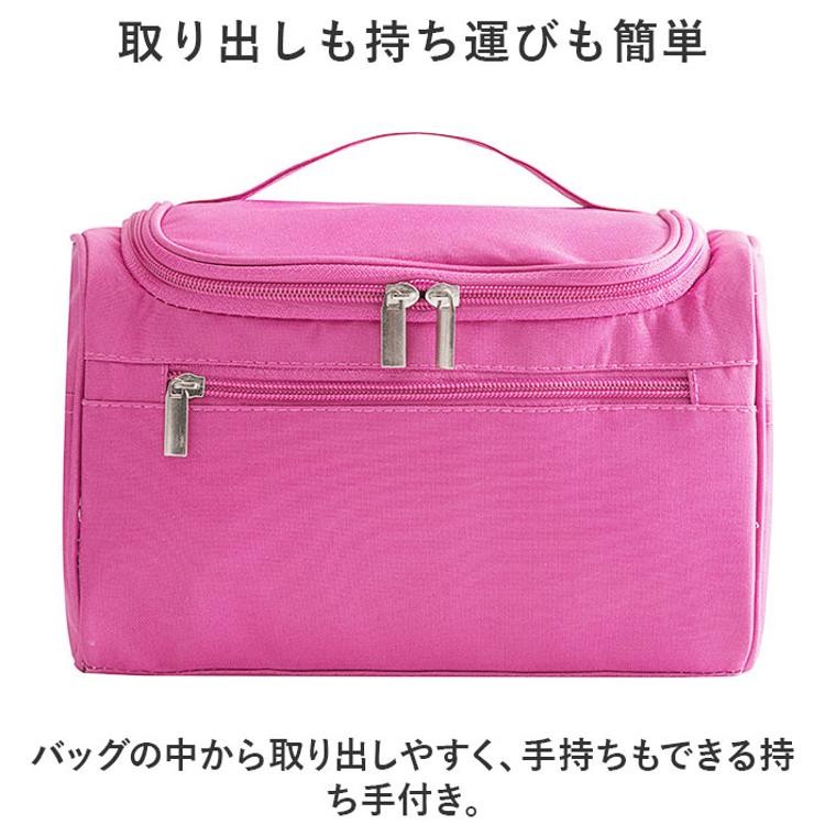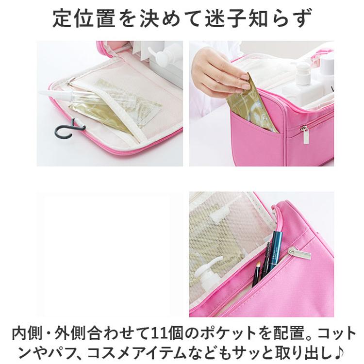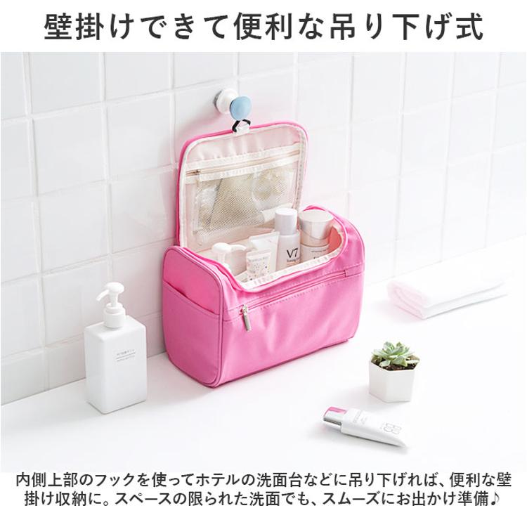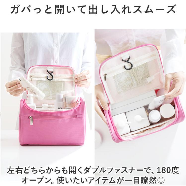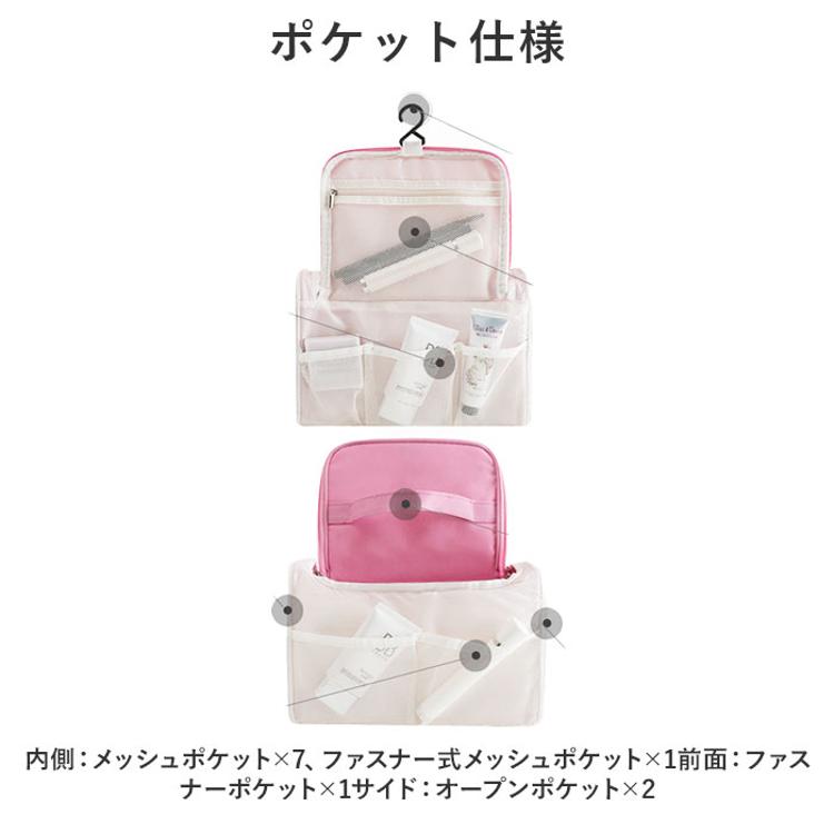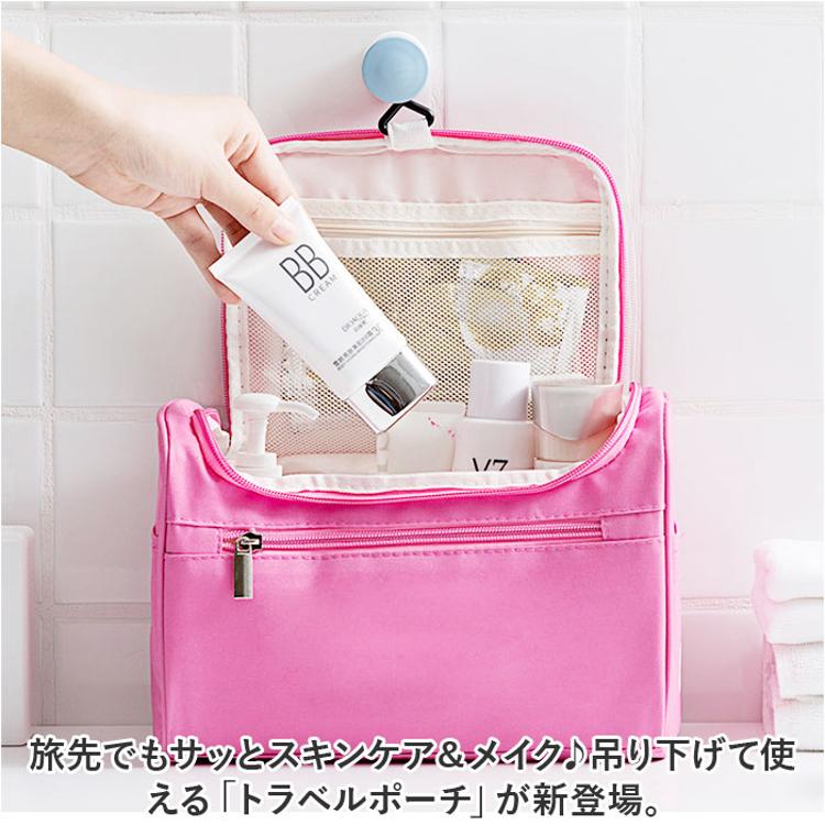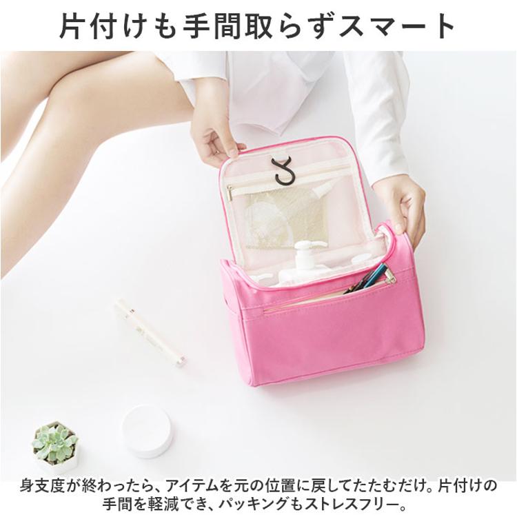 ・内側上部のフックを使ってホテルの洗面台などに吊り下げれば、便利な壁掛け収納に。スペースの限られた洗面でも、スムーズにお出かけ準備♪