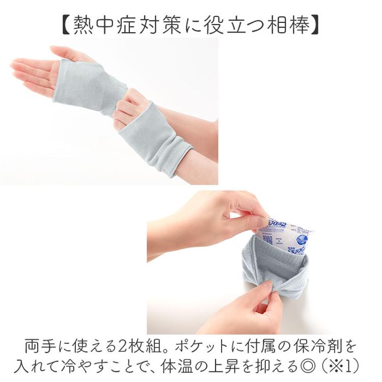 ・両手に使える2枚組。ポケットに付属の保冷剤を入れて冷やすことで、体温の上昇を抑える◎
