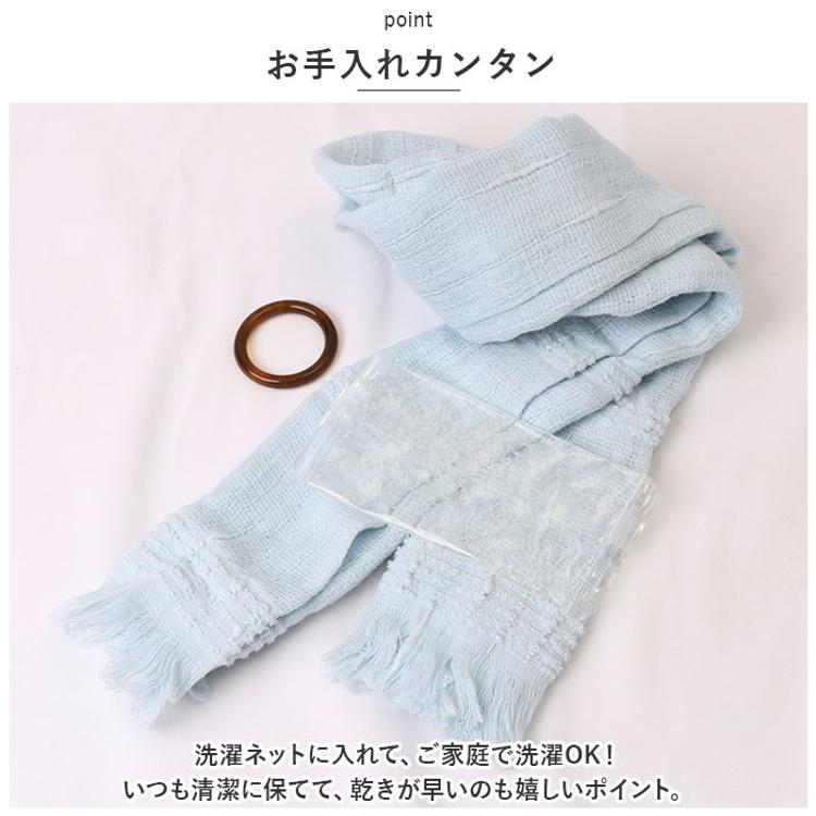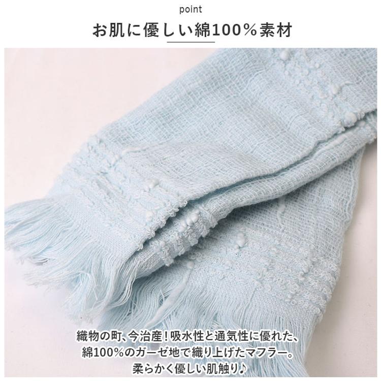 ・織物の町、今治産!吸水性と通気性に優れた、綿100%のガーゼ地で織り上げたマフラー。柔らかく優しい肌触り♪