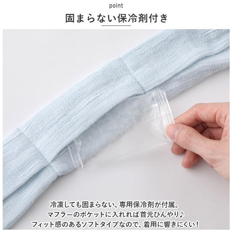・冷凍しても固まらない、専用保冷剤が付属。マフラーのポケットに入れれば首元ひんやり♪フィット感のあるソフトタイプなので、着用に響きにくい!