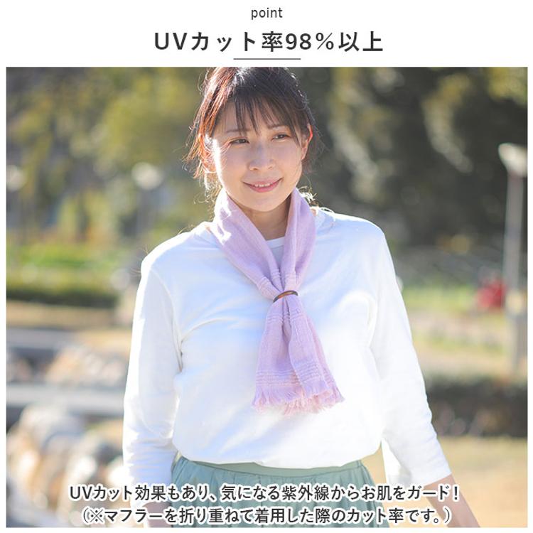 ・UVカット効果もあり、気になる紫外線からお肌をガード!(※マフラーを折り重ねて着用した際のカット率です。)