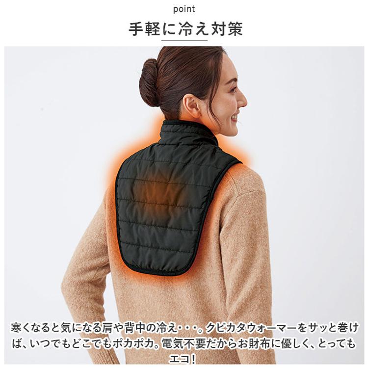 ・寒くなると気になる肩や背中の冷え・・・。クビカタウォーマーをサッと巻けば、いつでもどこでもポカポカ。電気不要だからお財布に優しく、とってもエコ!
