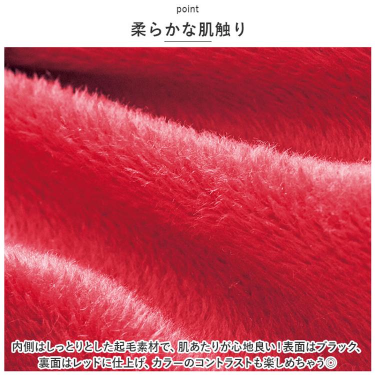 ・内側はしっとりとした起毛素材で、肌あたりが心地良い!表面はブラック、裏面はレッドに仕上げ、カラーのコントラストも楽しめちゃう◎