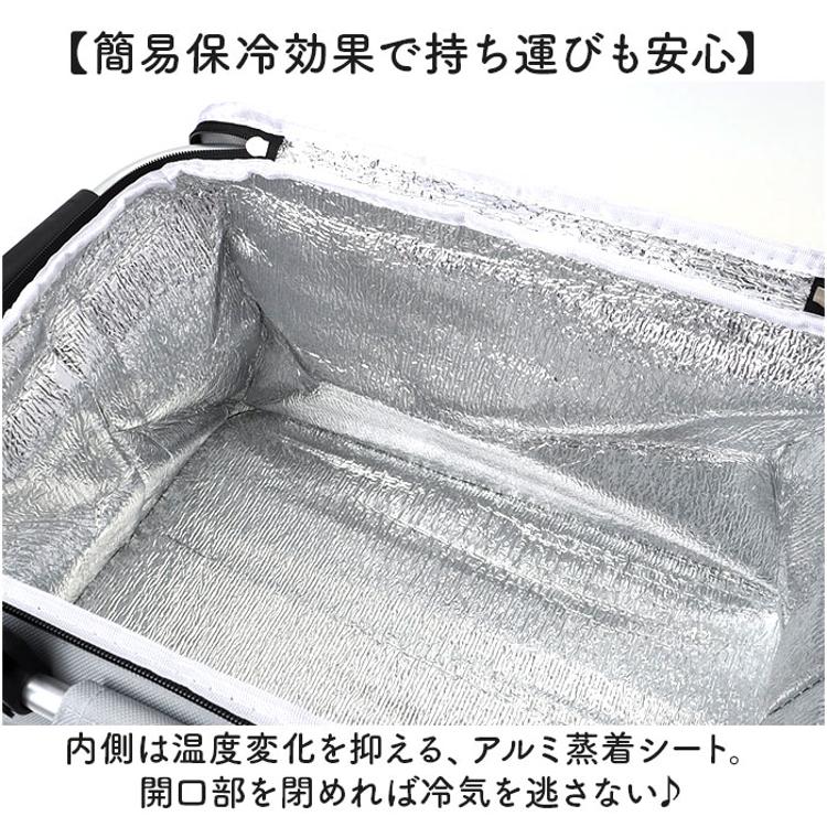 ・お弁当やドリンク、買い出し食材も入る容量約28L。底板内蔵で中身が傾くことなく持ち運び。