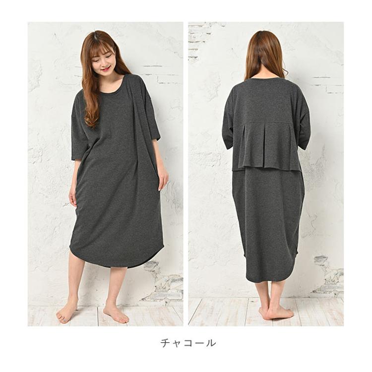ルームウェア レディース ワンピース 通販 かわいい 大きいサイズ ゆったり 部屋着 やわらか 可愛い シンプル 無地 バックフリル 春 秋 夏 春夏 バックフリルワンピース HW8344 ルームウエア ルームウェア ナイトウエア
