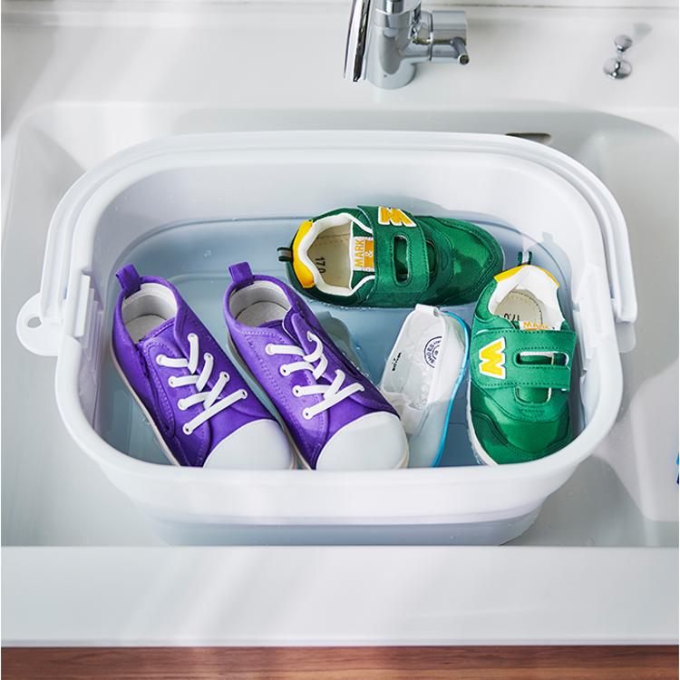 27cmの大人用の靴もすっぽり入る大きさで、ユニフォームや衣類のつけ置きまで幅広く活躍。