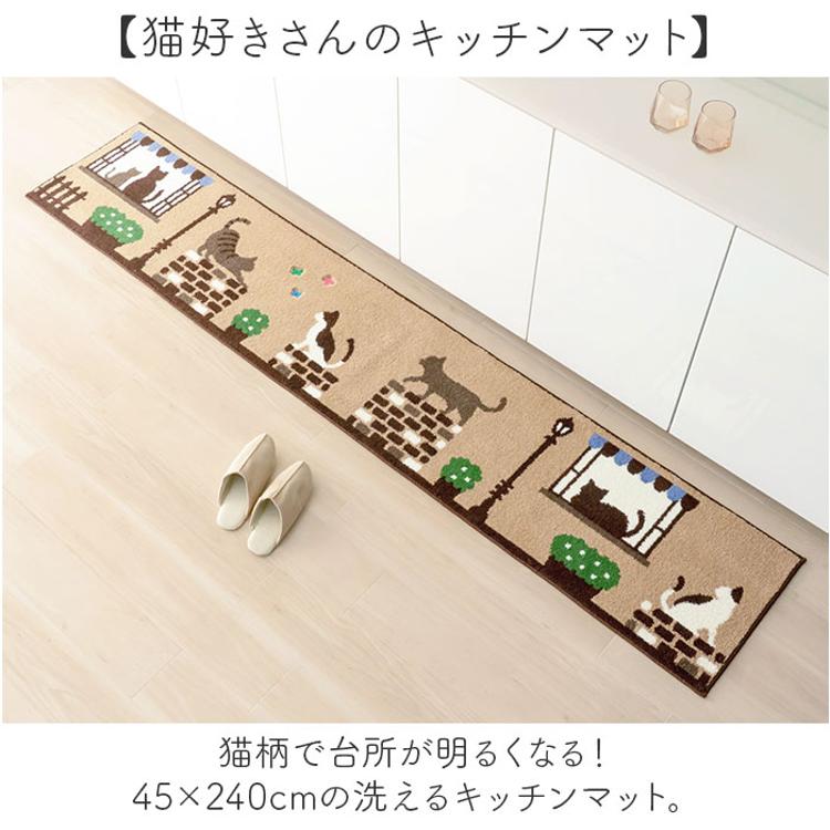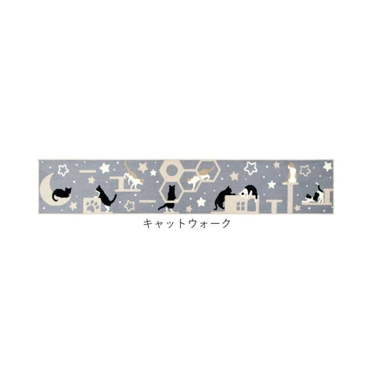 ・猫柄で台所が明るくなる!45×240cmの洗えるキッチンマット。