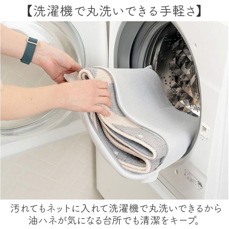 ・汚れてもネットに入れて洗濯機で丸洗いできるから油ハネが気になる台所でも清潔をキープ。