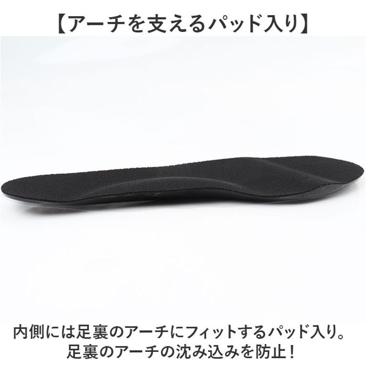 ・内側には足裏のアーチにフィットするパッド入り。足裏のアーチの沈み込みを防止!
